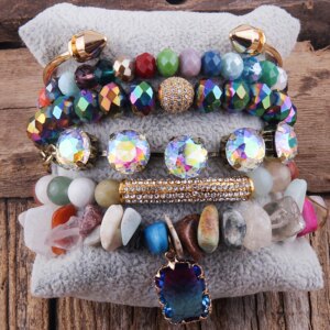 Fashion Bohemia Jewelry Natural Stone Charm 5pc Stack Beaded Bracelets Bangle Set For Women Gift