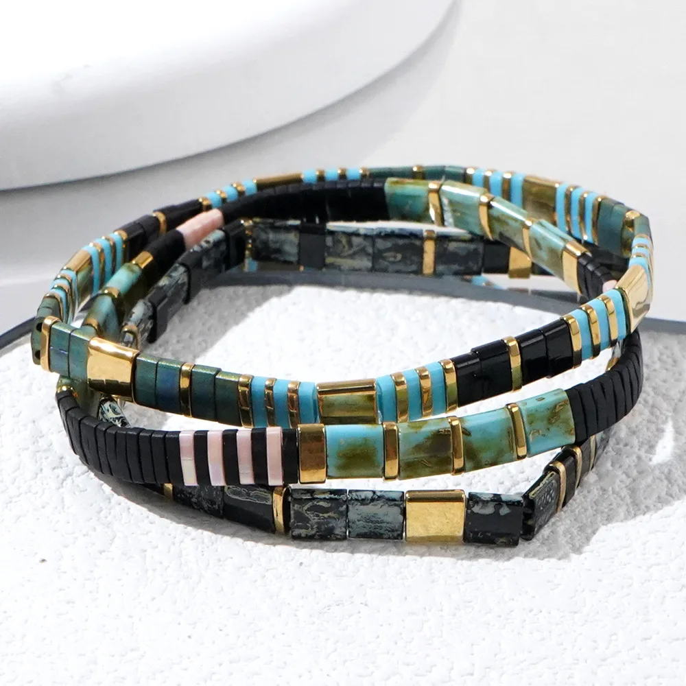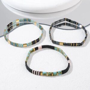 3pcs/set Bohemian style women’s fashionable retro bracelet, layered TILA bead bracelet set, daily gift giving