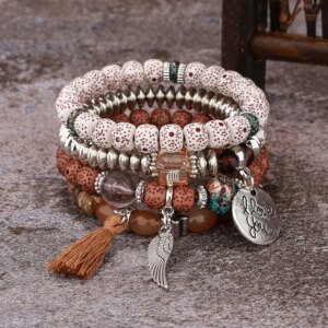 Be the first to review “4Pcs Bohemian Women Pink Tassel Bracelet Set For Female I Love You Feather Round Charm Beads Chain Bangle Fashion Party Jewelry” Cancel reply