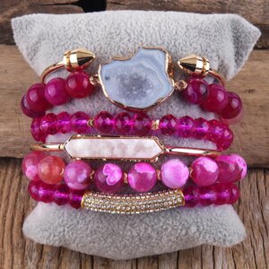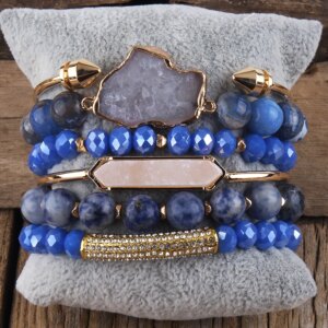 Fashion Bohemia Jewelry Natural Stone Charm 5pc Stack Beaded Bracelets Bangle Set For Women Gift