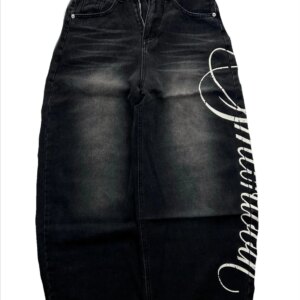 Streetwear New Fashion Vein Bloom Selvedge Printing Baggy Jeans Women Y2K Hip Hop Retro Popular Casual High Waist Wide Leg Pants