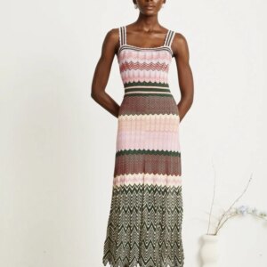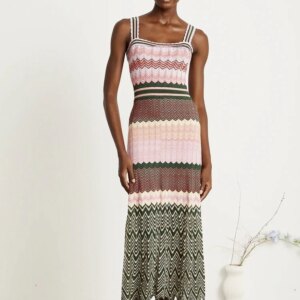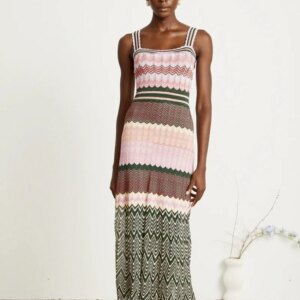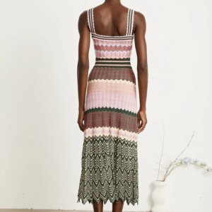 Luxury Brand Design Knitted Zigzag High Elasticity Color Sleeveless Long Maxi Dress Women Arab Africa Popular Boho Lady Skirt