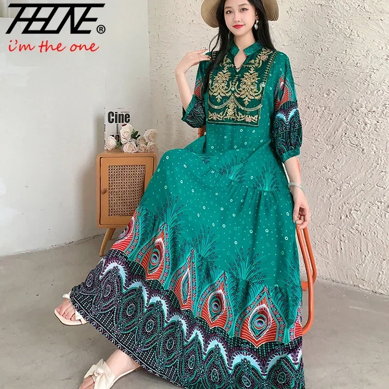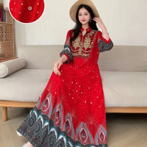 Summer Autumn Robe Maxi Long Dress Women Indian Clothes Boho Cotton Print Floral Boho Korean Style Fashion Casual Vestido Largos