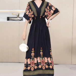 Be the first to review “Bohemian Dress New Midi Dress Striped Colorful Flower V-Neck Party Dress Elastic Waist Large Swing Skirt Youthful Woman Clothes” Cancel reply