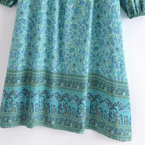 Happie Queens Women Green Floral Print Beach Long Bohemian Dresses Robe Ladies Summer Rayon Cotton Midi Dress Vestidos
