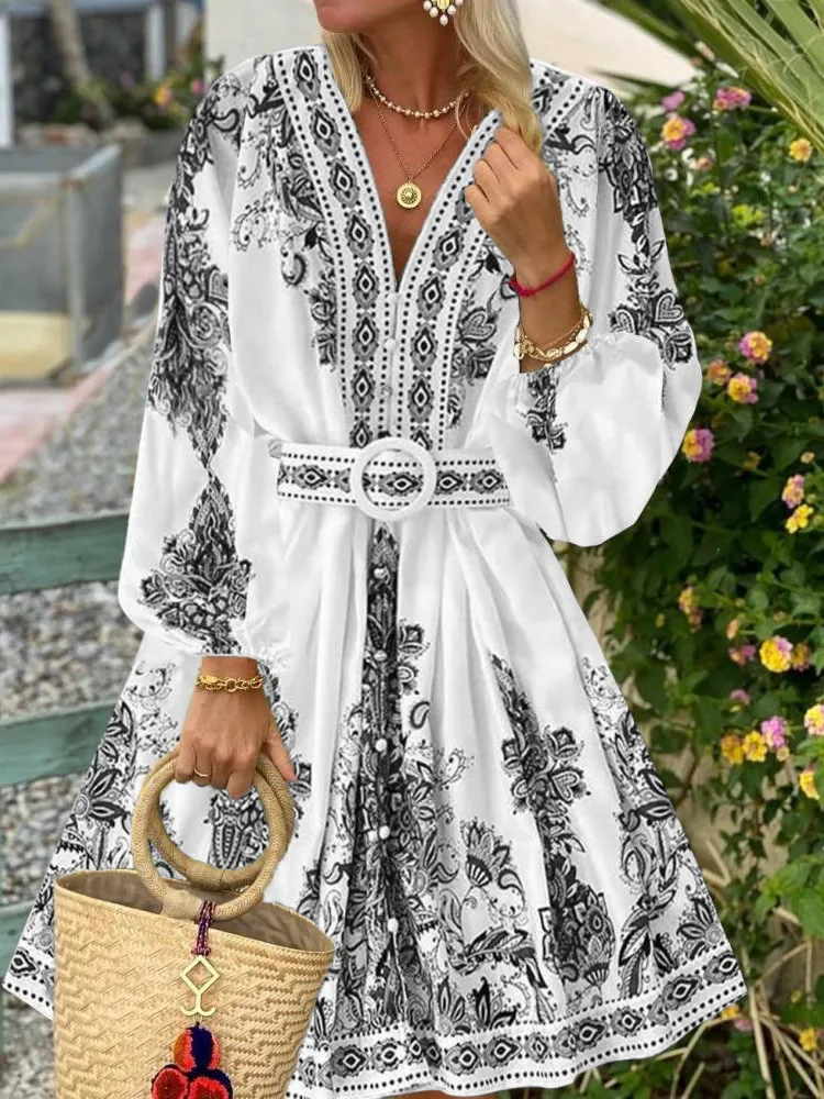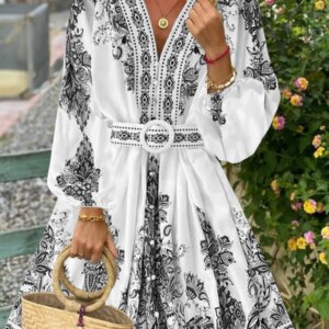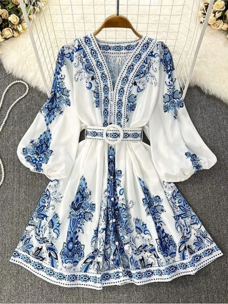 Be the first to review “Spring Elegant Women Dress 2025 Fashion Lantern Sleeve V Neck Boho Print Dress Vintage Belt Loose Party Dresses Femme Vestidos” Cancel reply