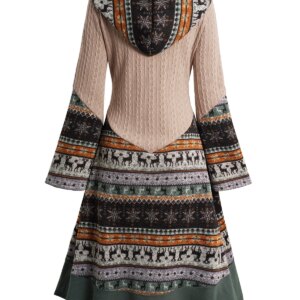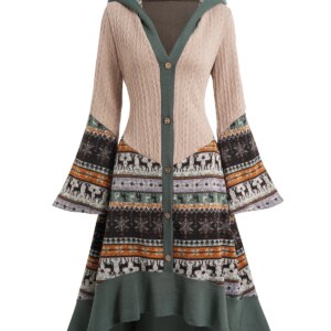Be the first to review “Womens Christmas Dress Elk Snowflake Tribal Pattern Knit High Low Flocking Liner Hooded Dress Button Up Flare Sleeve Midi Dress” Cancel reply