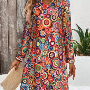 Be the first to review “Women’s Long Sleeve Graphic Print Dress For Spring,Women’s V-Neck Long Sleeve Circle Dress – Elegant Midi Dress with Flowy Skirt” Cancel reply