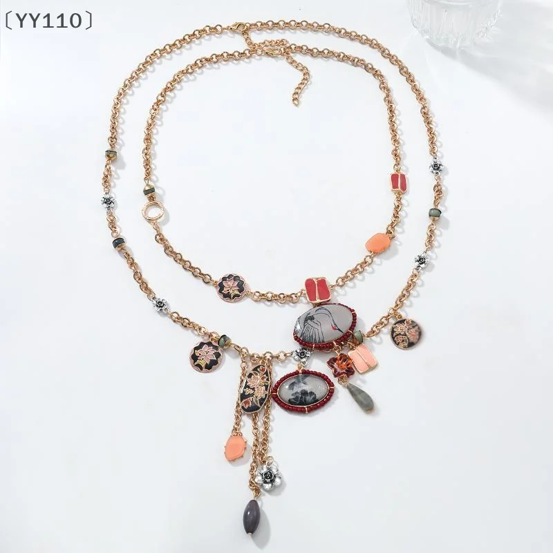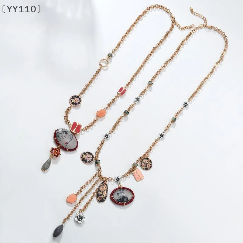 1. Unique design: The necklace adopts a double-layer design, decorated with flowers and crane patterns, with a drop-shaped pendant as the focus, reproducing the artistic style of the retro era and creating a unique charm.