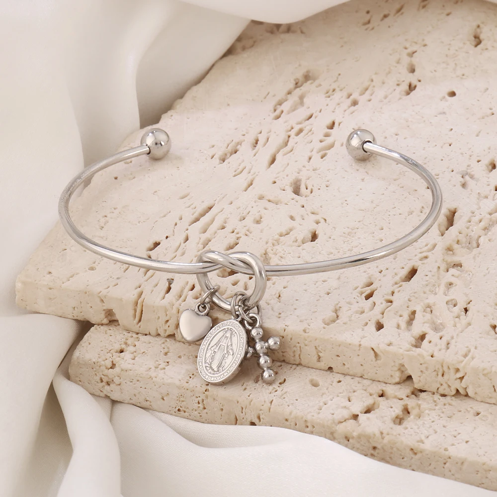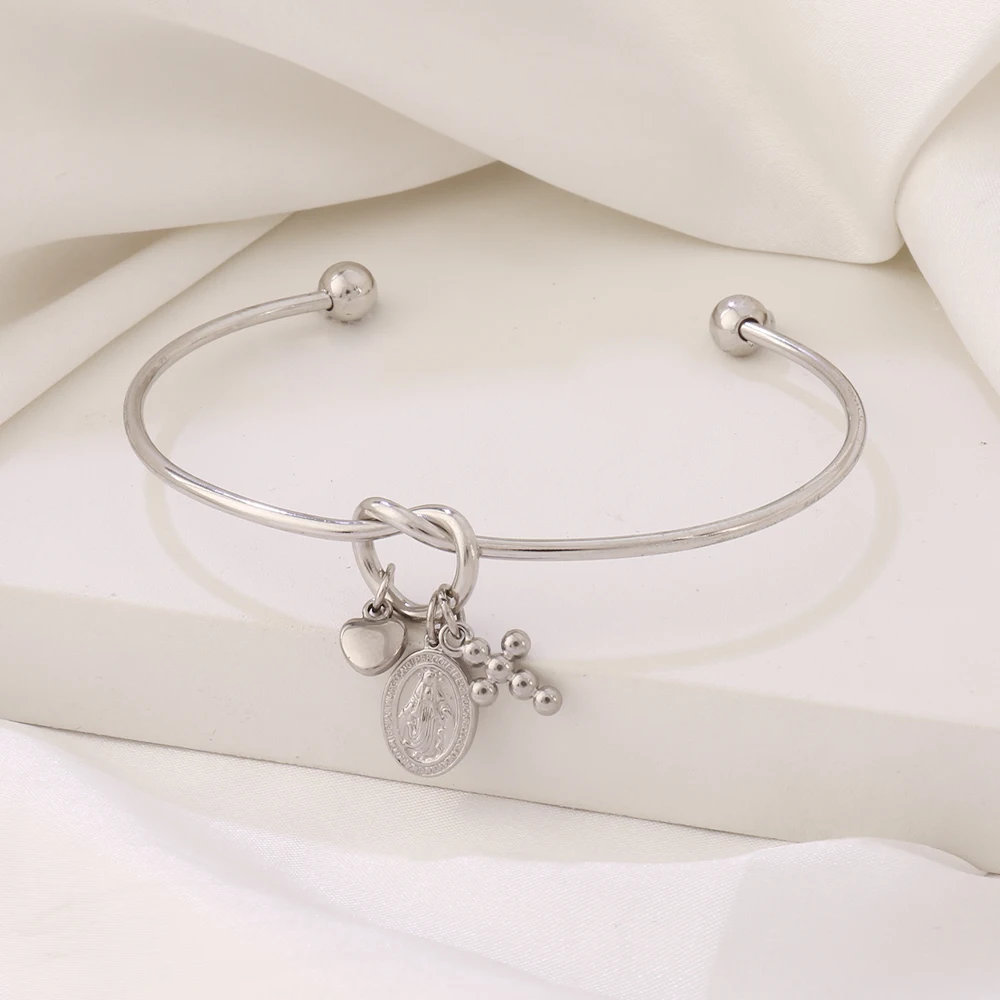Be the first to review “1pcs Stainless Steel Cross Virgin Mary Pendant Adjustable Cuff Bangles For Women Fashion Tiny Heart Open Bangle Bracelet Jewelry” Cancel reply