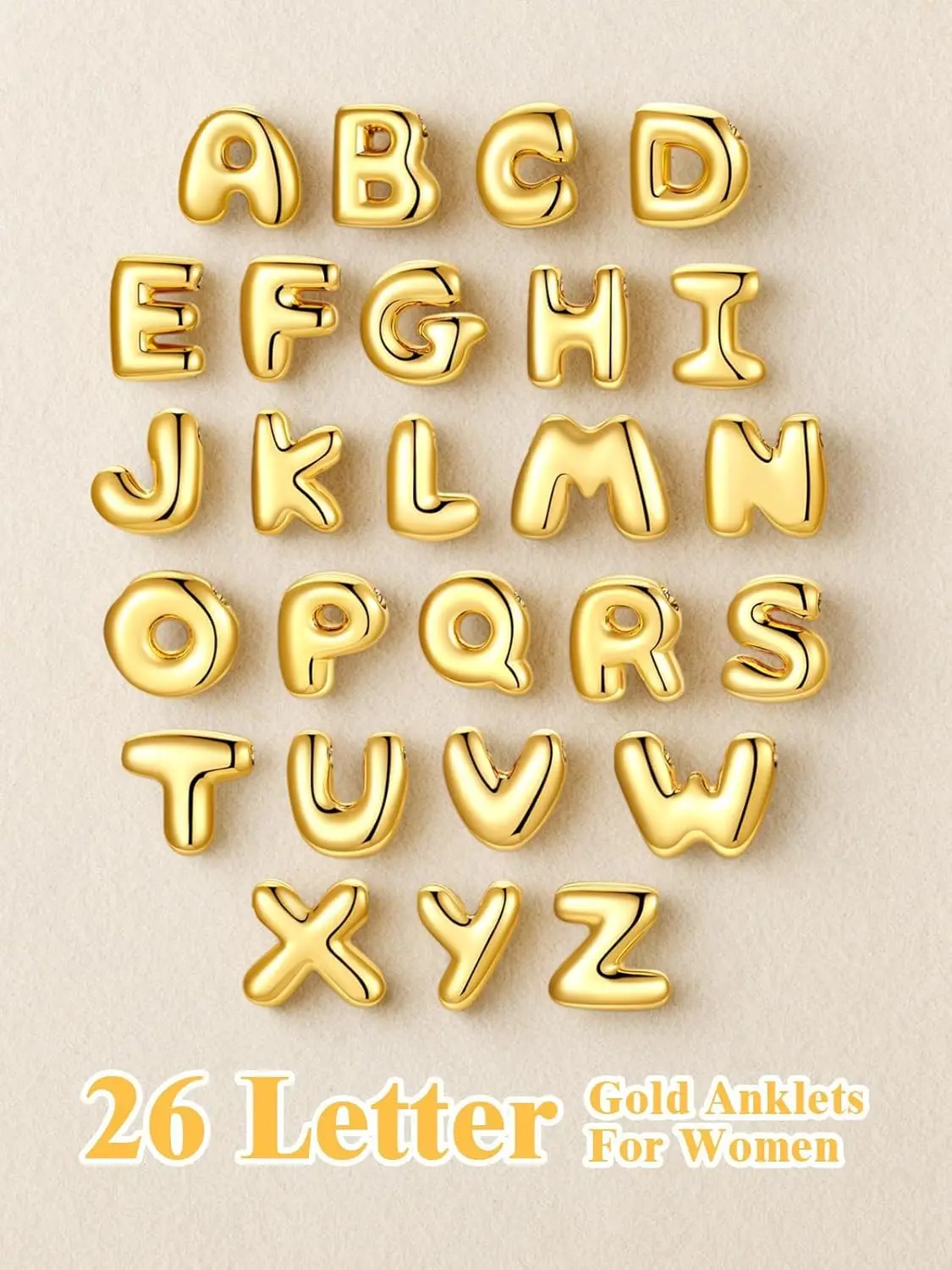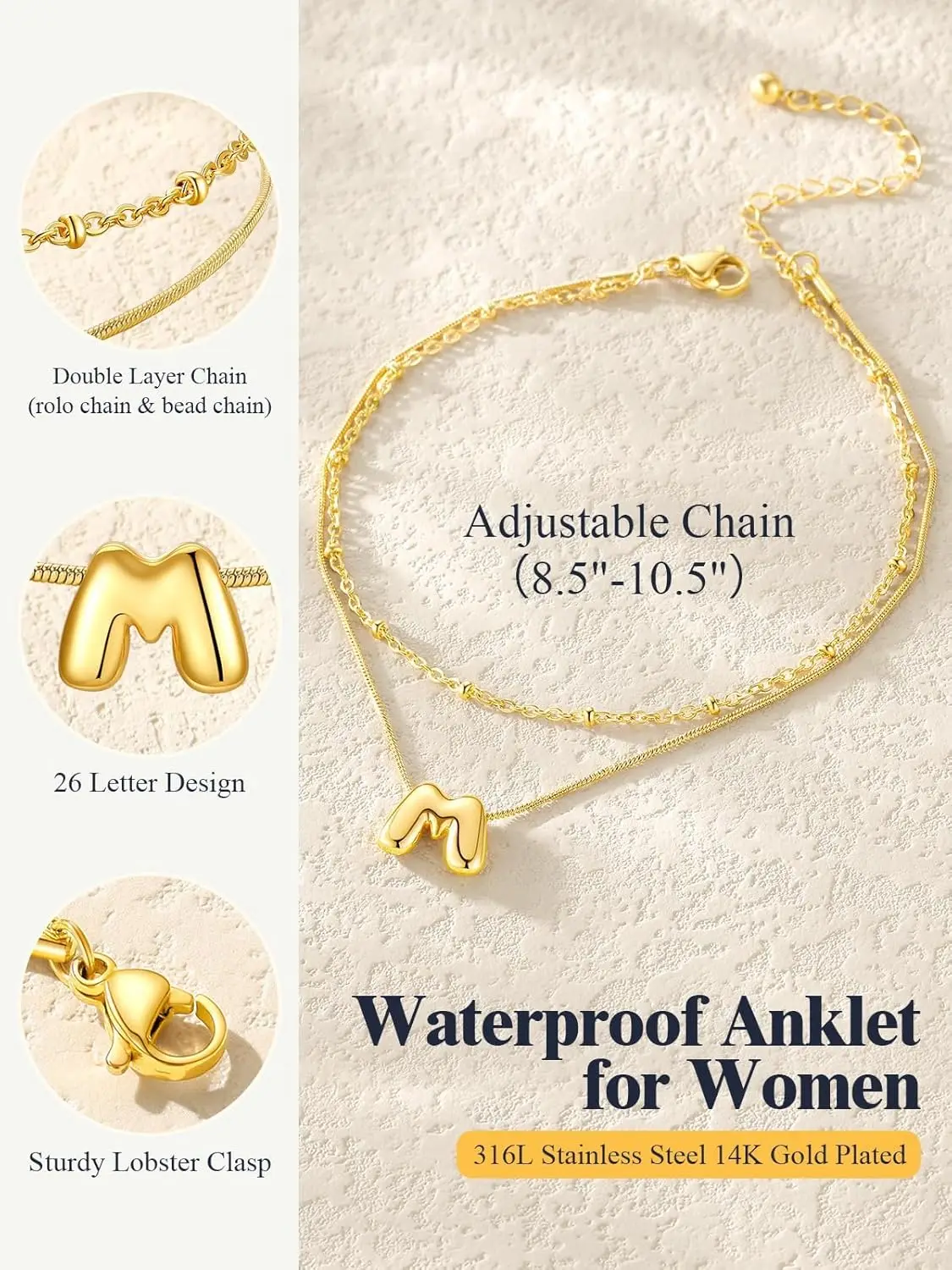 U7 Chunky Inital Letters Layers Chain Anklet Bracelets for Women 14K Gold Color Adjustable Summer Beach Ankle Jewelry Gift