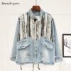 Autumn Boho Camouflage Sequins Denim Jacket
