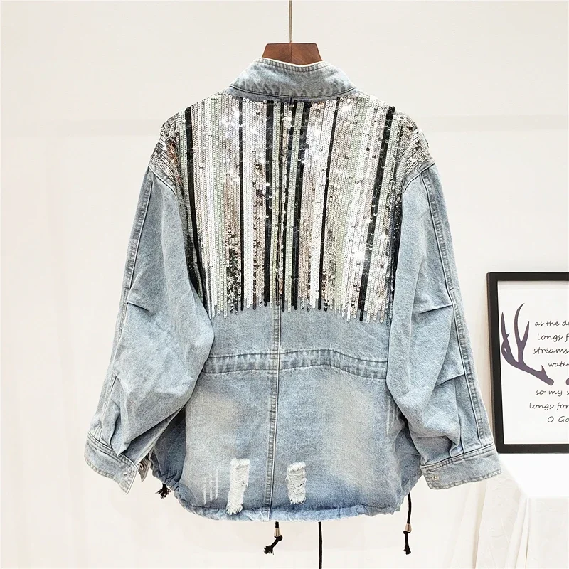 Be the first to review “Autumn Women New Boho Camouflage Sequins Holes Denim jacket Outwear Lace up Jeans jackets Casual Bomber Jacket Jaquetas Feminina” Cancel reply