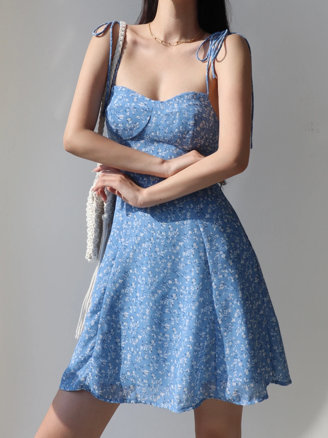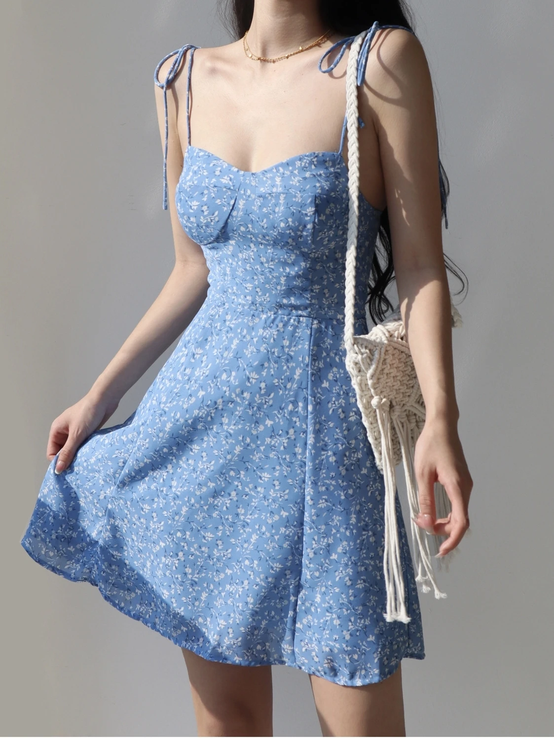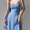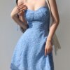 Get ready to turn heads this season with this blue flower spaghetti strap vintage mini dress — a must-have staple for your summer wardrobe. Designed with delicate straps, floral prints, and a flattering lace-up front, this dress brings together romantic elegance and everyday comfort for any sunny outing.