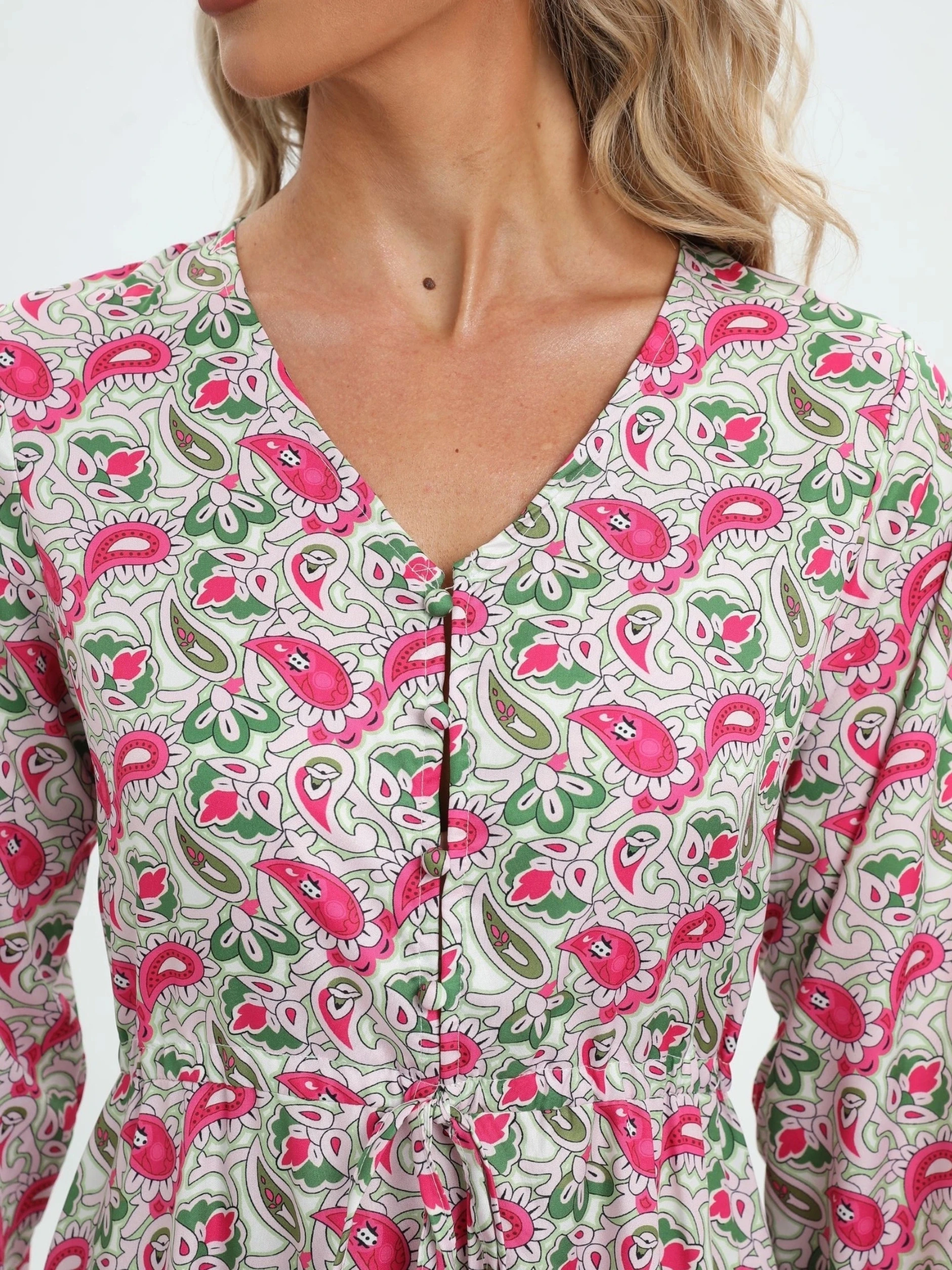 Be the first to review “Bohemia Elegant Dress Women’s Print V-neck Nipped Waist Dress String Long Sleeve Maxi Dress” Cancel reply