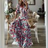 Bohemia Elegant V-Neck Nipped Waist Maxi Dress