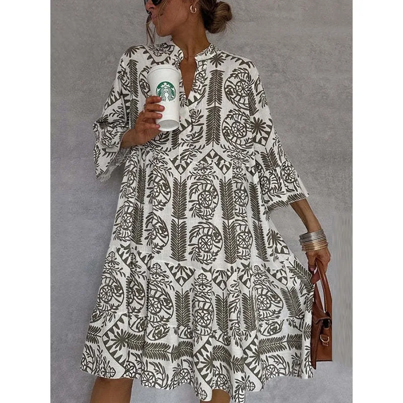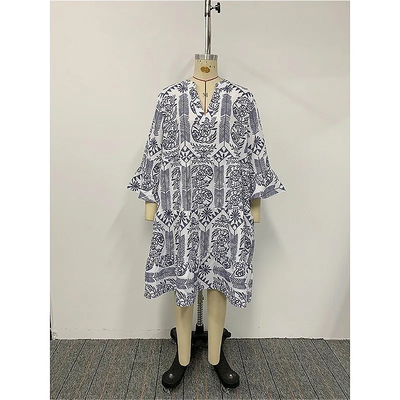 Be the first to review “Bohemia Printed Knee-length Dresses for Women 2026 Spring Summer Loose Fit Casual V Neck Flare Sleeve Holiday Pullovers Dress” Cancel reply