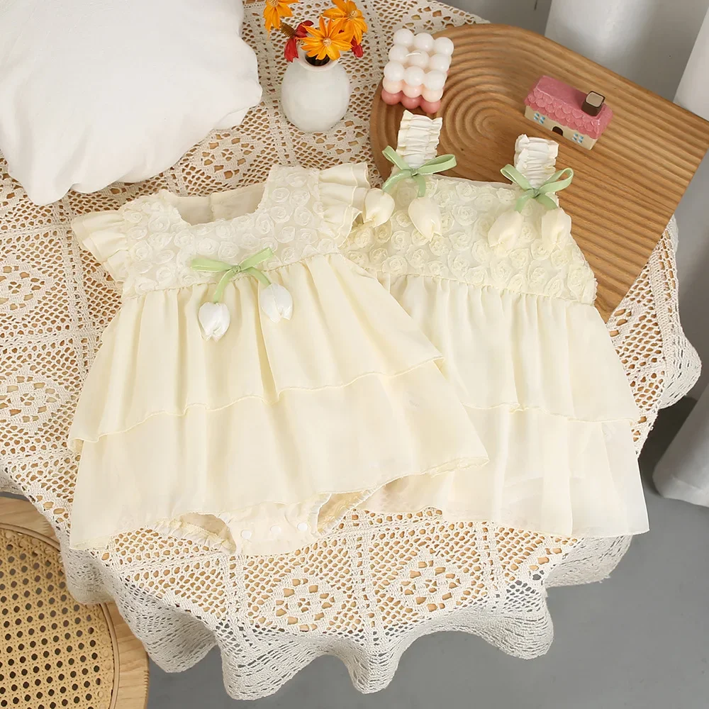 Layered tulle skirt + 3D tulip bow decoration, fits 100-day photo shoots, birthday parties and daily outings.