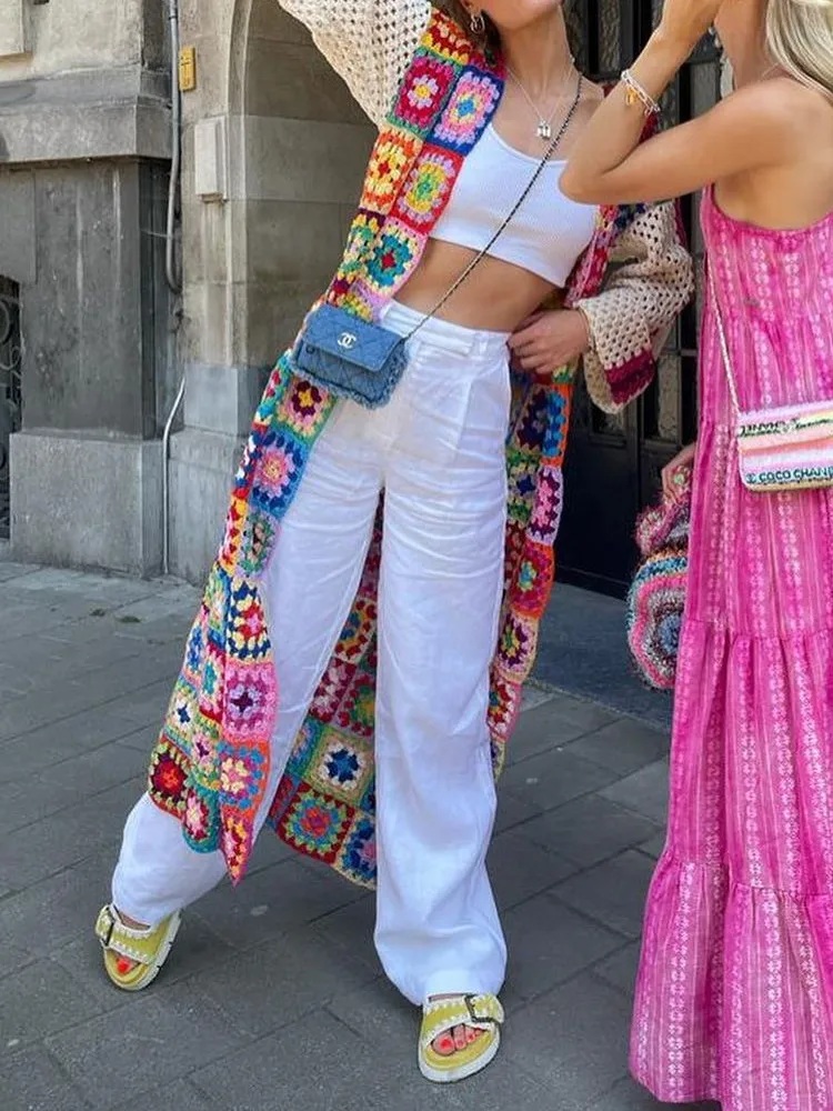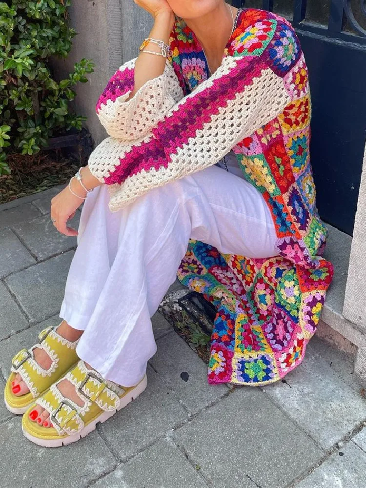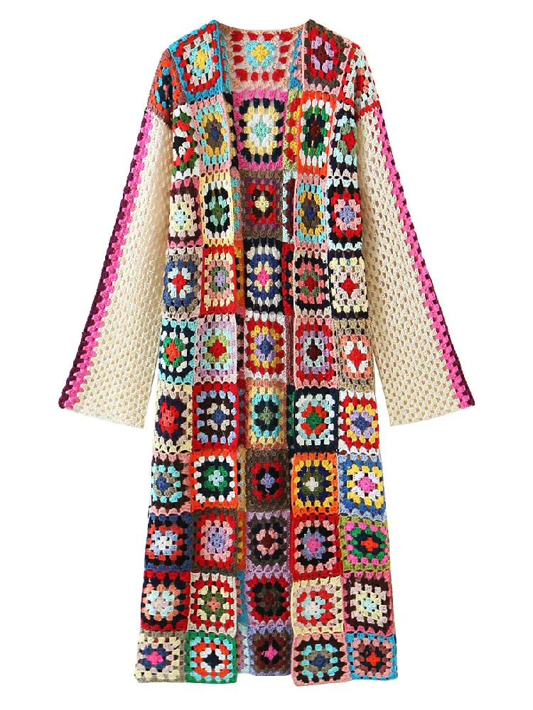 Be the first to review “BOHO Colored Plaid Flower Hand Crochet Cardigan Ethnic Woman V neck Open Stitching Long Sweater Knitwear Jumper Holiday” Cancel reply