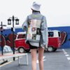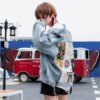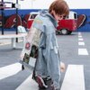 Boho Letter Embroidery Patch Splice Holes Big Pocket Denim Jacket