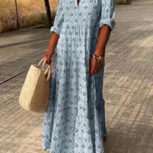 Women s Summer Bohemian Midi Dress Floral Print Half Sleeve V Neck Elastic Waist Loose Beach Dress
