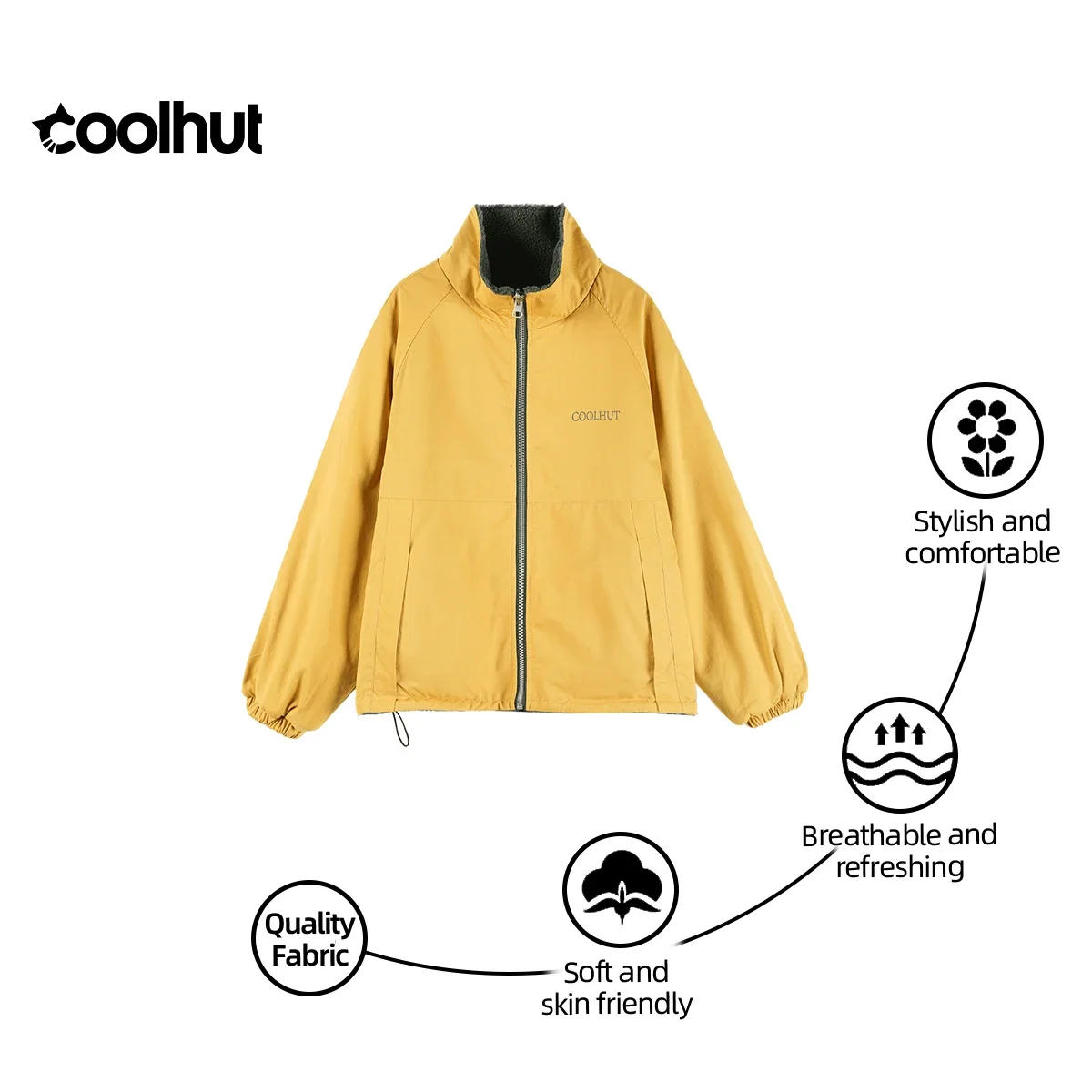 This COOLHUT jacket offers a reversible design, allowing you to switch between two stylish looks with ease.