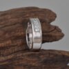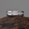 This men’s wedding band is made of 925 sterling sliver and high-quality moissanite stones that are known for their brilliance and fire.