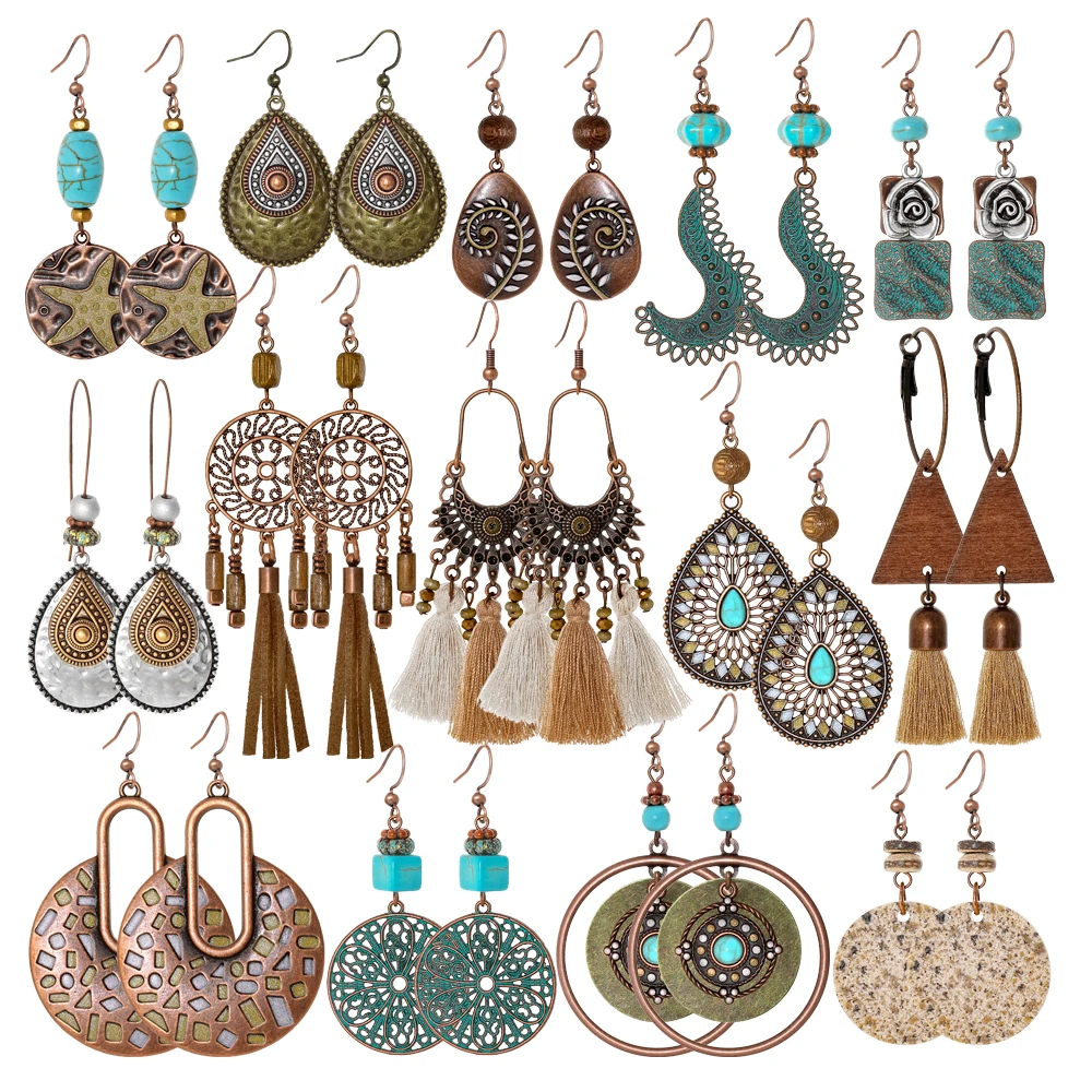 14/6/3/1 Pairs Bohemian Women’s Earring Set Vintage Style Dangle Earrings Geometric Classic Trendy Earrings Daily Wear Party
