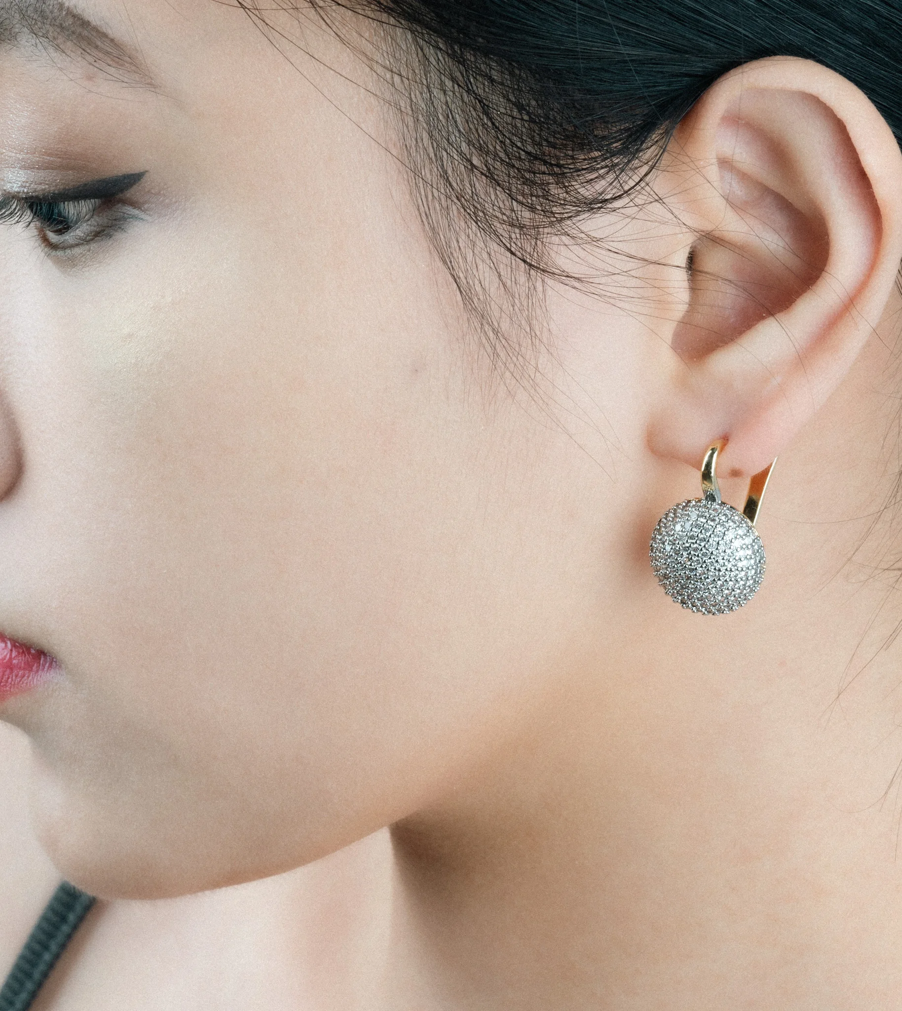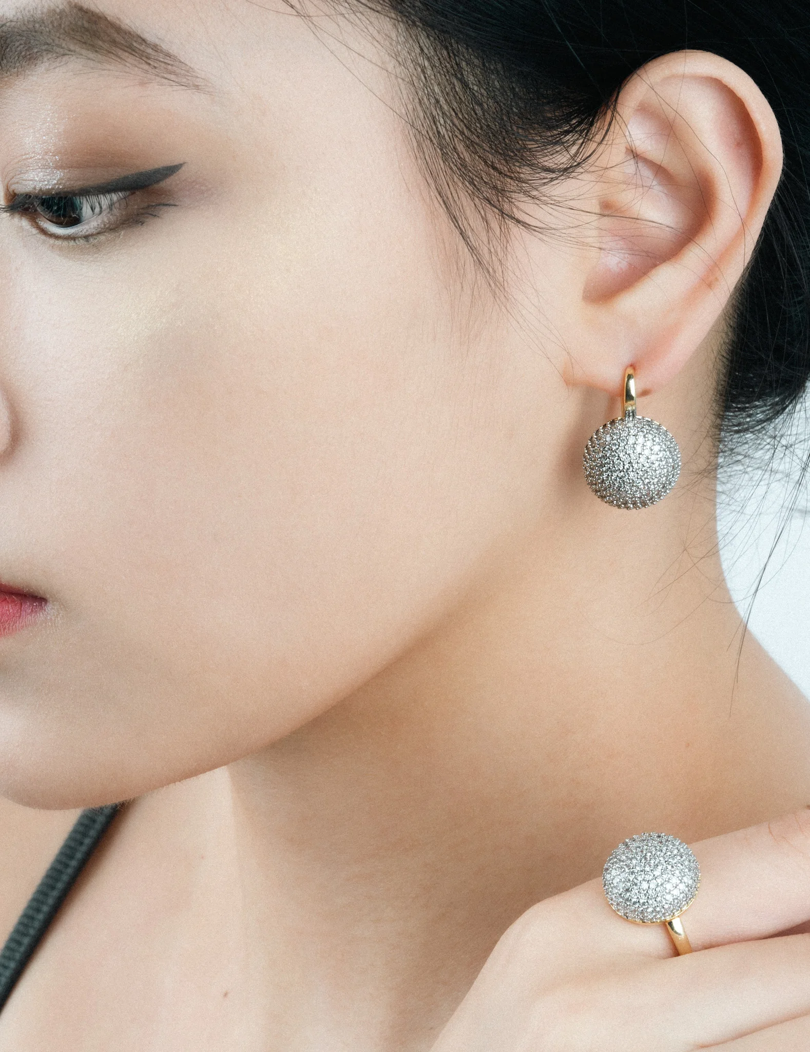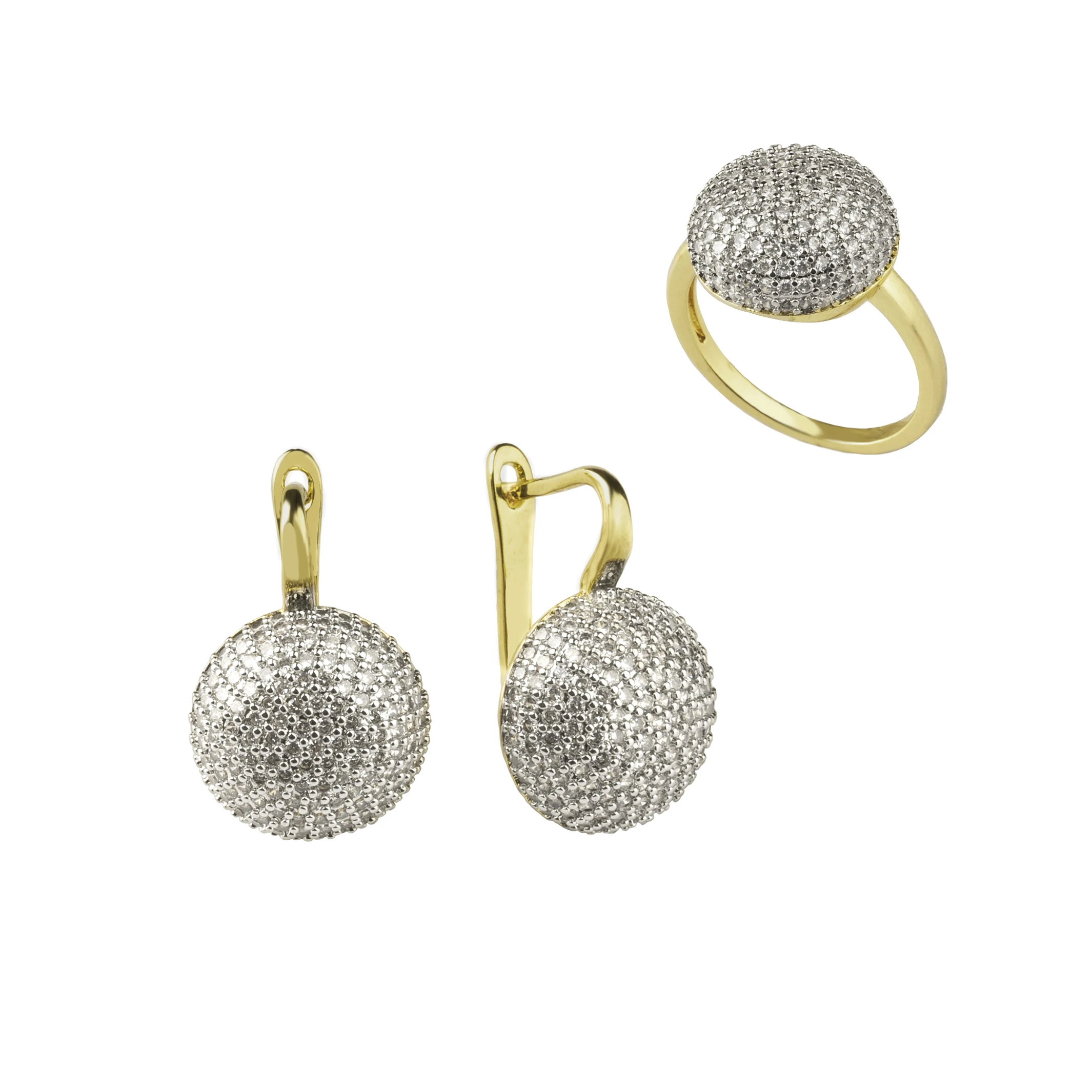 Round Fashion Jewelry Inlaid Cubic Zirconia Earrings Ring Sets For Women Copper Plated 2-Color 14K Gold Luxury Party Accessories