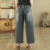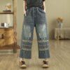 2025 Ethnic Embroidery Jeans for Women Japan Style Vintage Boho Denim Straight-leg Pants Fringe Straight Jeans Trousers