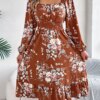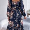 Be the first to review “Floral Print Midi Dress Long Sleeve Square Neck with Cinched Waist” Cancel reply