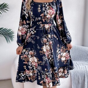 Be the first to review “Floral Print Midi Dress Long Sleeve Square Neck with Cinched Waist & Ruffle Trim – A-Line Casual Vacation Dress for Spring Autum” Cancel reply