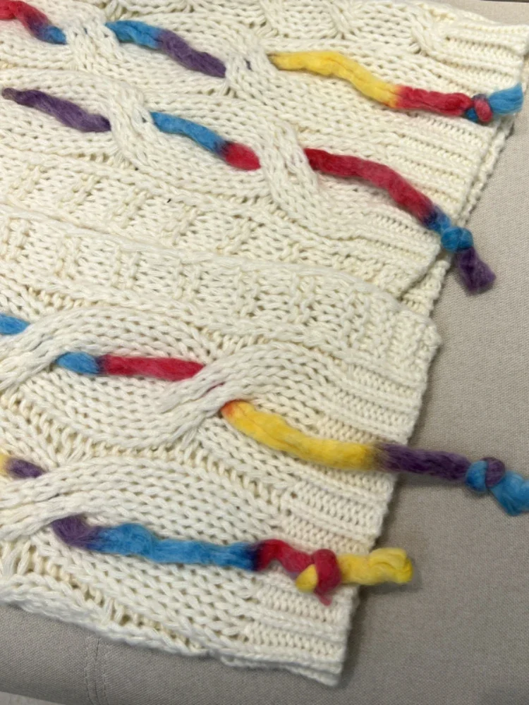 🌈 Vibrant Rainbow Details – Each cardigan is uniquely crafted with multicolor yarn, adding playful personality.