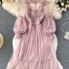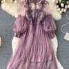 Be the first to review “Ladies Dress Three-dimensional Flower Hook Mesh Temperament Stand Collar Lantern Sleeve High Waist Slim Female Dresses” Cancel reply