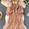 Be the first to review “Ladies Dress Three-dimensional Flower Hook Mesh Temperament Stand Collar Lantern Sleeve High Waist Slim Female Dresses” Cancel reply