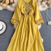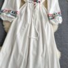 Spring Autumn Linen Embroidered Boho Dress