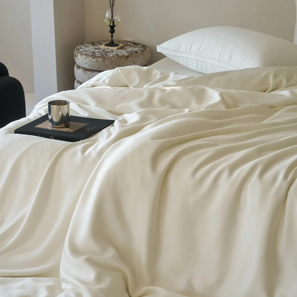 Liv-Esthete White Pure 100% Pure Silk Duvet Cover Set with Pillowcases Solid Color Healthy Skin Twin/Queen/King Luxury Bedding