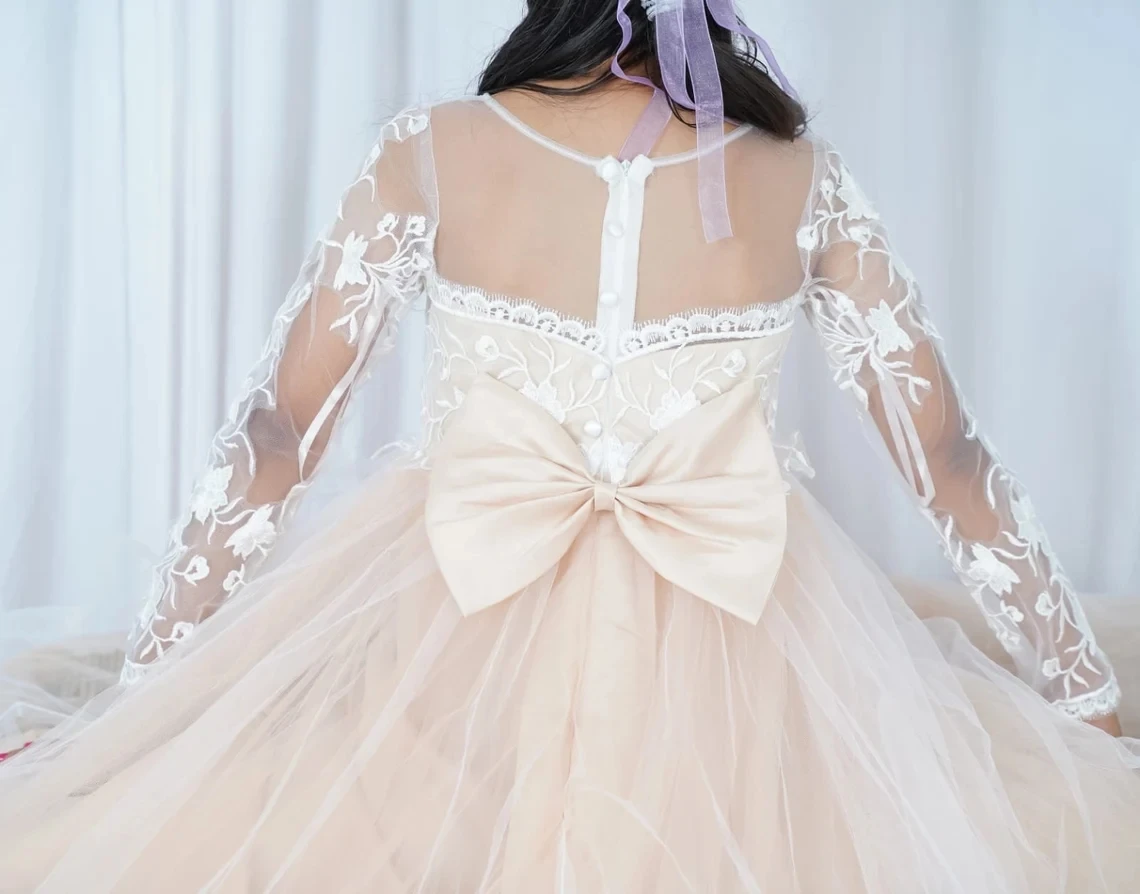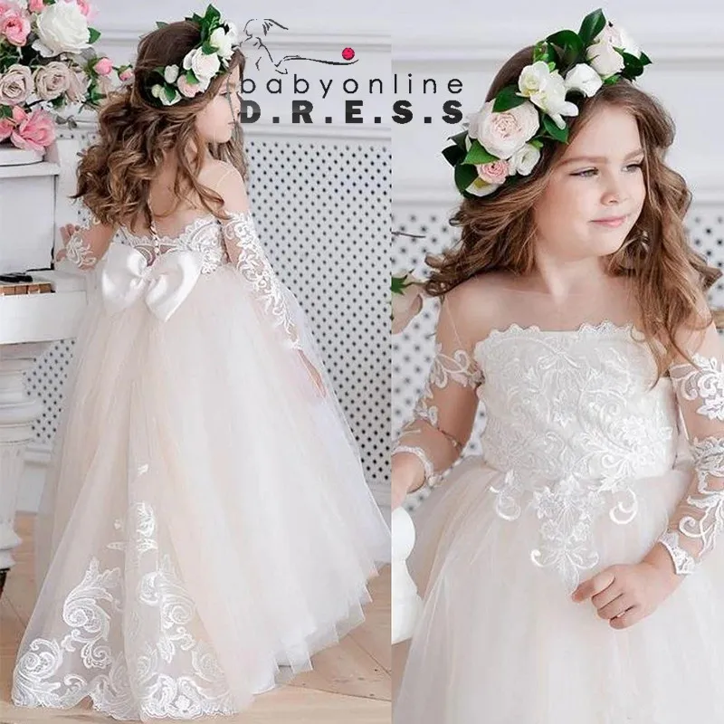 MisShow Lace Flower Girl Dresses for Kid Child Wedding Party Princess Dress Floral Bodice Tulle Ball Gown First Communion Dress