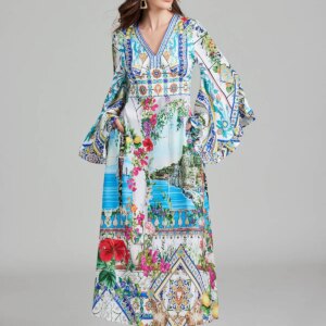 Be the first to review “New Autumn Runway Gorgeous Flower Holiday Maxi Clothes Women’s V Neck Flare Sleeve High Waist Flower Print Boho Long Dress” Cancel reply