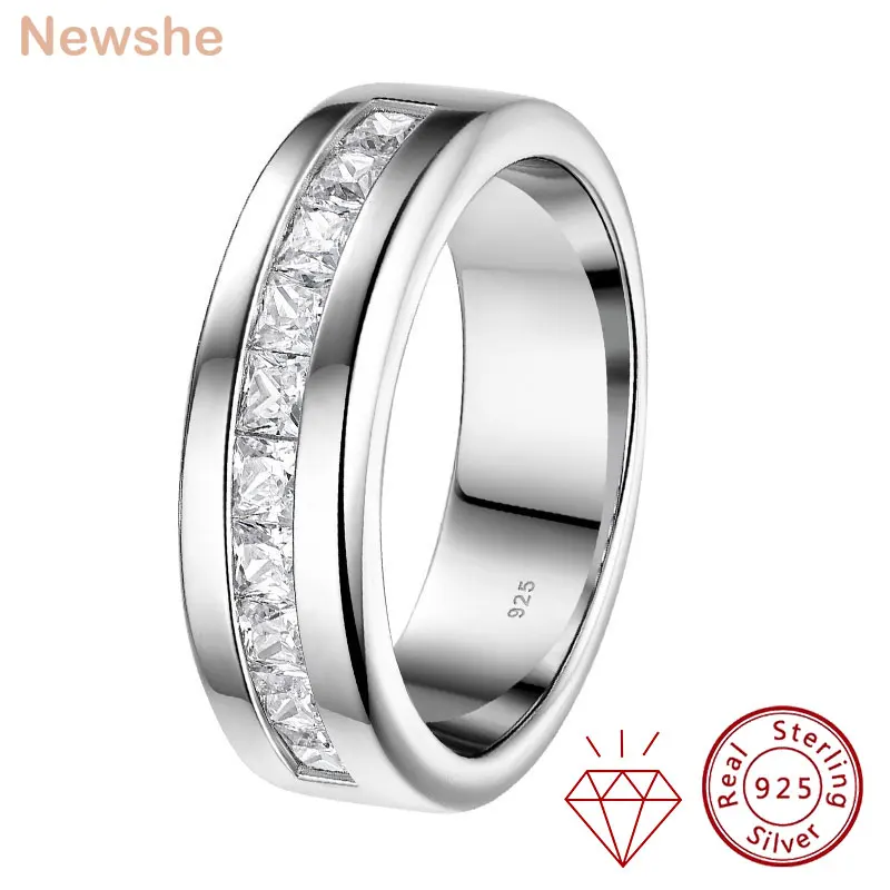Newshe 925 Sterling Silver Moissanite Mens Wedding Band Half Eternity Princess Cut Lab Created Diamond Ring Luxury Jewelry