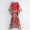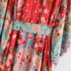 Boho Queens Women Red Peacock Floral Print Bat Sleeve Kimono