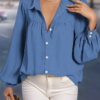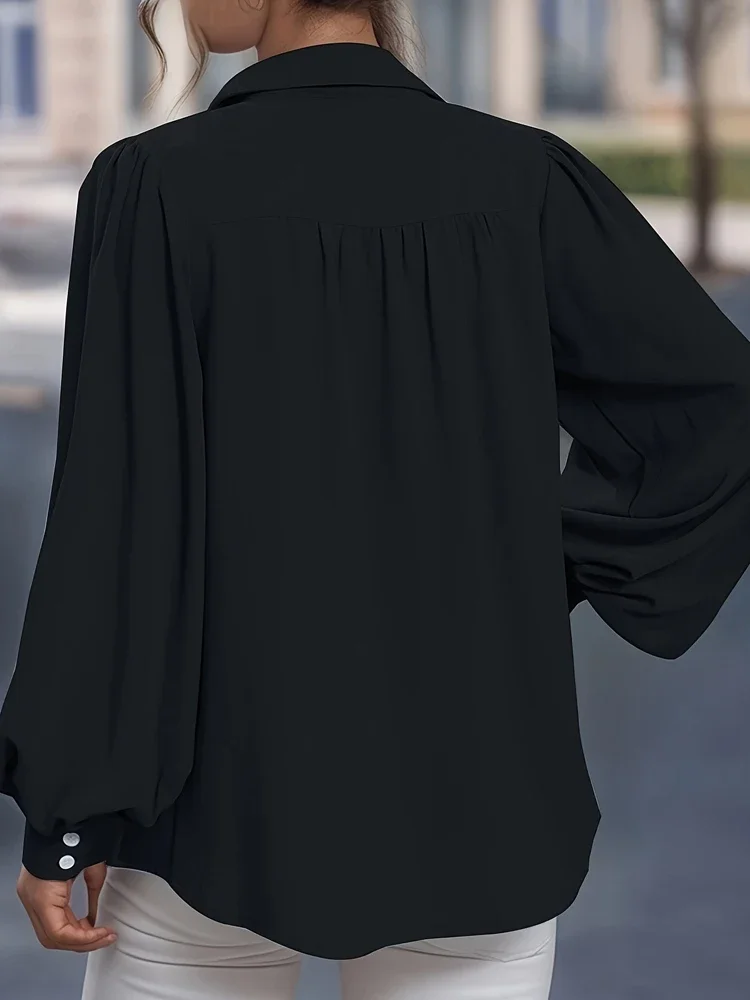 Featuring lantern sleeves, this blouse adds a touch of elegance to any casual outfit while providing full coverage.
