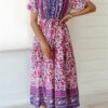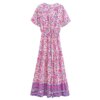 Boho Queens Vintage Women Purple Floral Print Short Sleeve