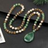Name:Bohemian retro style natural stone pendant necklace handmade bead sweater chain exquisite pendant Valentine’s Day