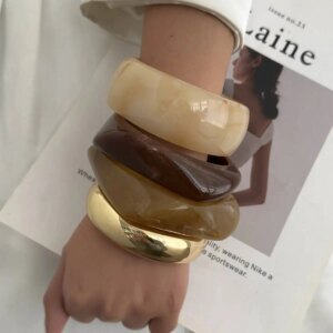 Be the first to review “Salircon Vintage Irregular Wide Chunky Resin Acrylic Bangle Bracelets Women Punk Geometric Metal Bracelet Fashion Party Jewelry” Cancel reply