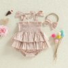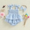 Baby Girls 2 Piece Outfits Sleeveless Square Neck Plaid Ruffled Layers Romper Dress with Bow Headband
