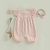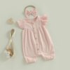 Baby Girl Summer Outfit Solid Flying Sleeve Romper with Bow Headband 2 Piece Set