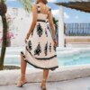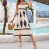 Women Boho Elastic Strap Maxi Dress Black White Tribal Print