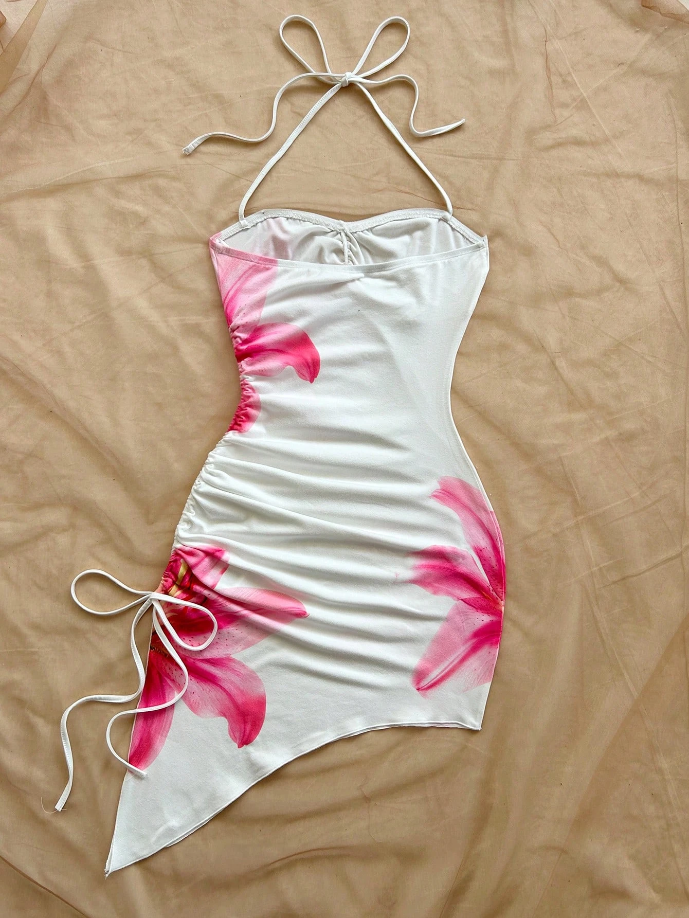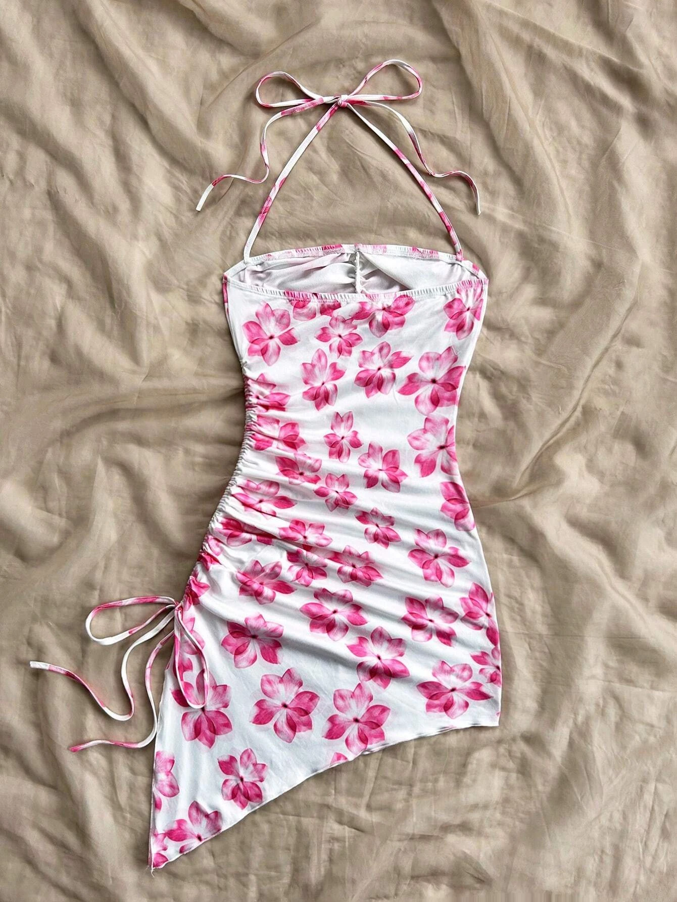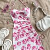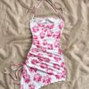 Chic Floral Beach Dress with Asymmetric Hem & Halter Neck Design – Perfect for Vacation & Streetwear