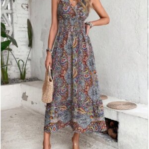 Be the first to review “Women Bohemia Casual Dress Summer Geometric Print Neckline Lace-up Puff Sleeves Long Dresess Holiday Beach Robe A-Line Vestidos” Cancel reply